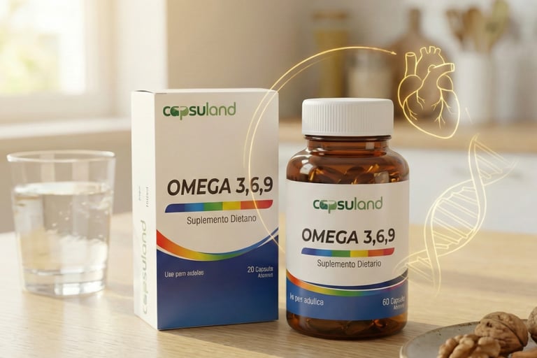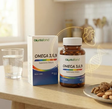 Los Omega 3 y 9 contribuyen al mantenimiento de niveles normales de colesterol y triglicéridos, apoyando la salud cardiovascular cuando se combinan con hábitos saludables.